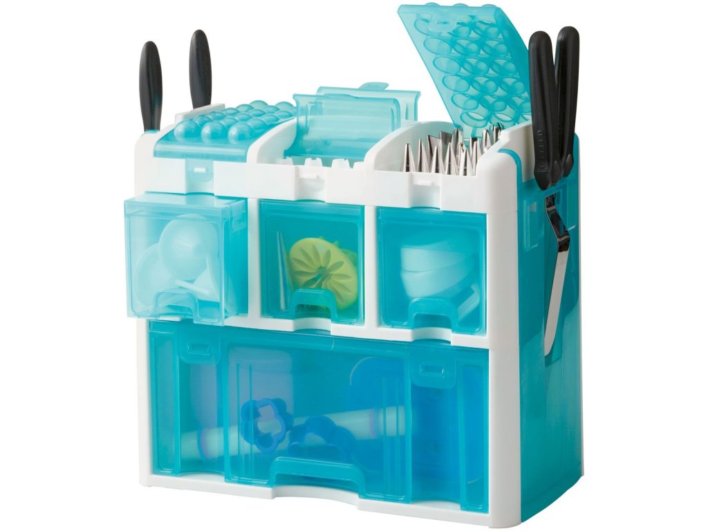 Cukrászkarrier indításán gondolkodik, vagy csak meg kell újítania a cukrászfelszerelését? Egy praktikus és kényelmes készlet 263 cukrászeszközből áll majd. A szervező alkalmas díszítőcsövek, festékek, fondanttal való munkavégzéshez szükséges eszközök és egyéb olyan eszközök tárolására, amelyeket a torták modellezésekor és díszítésekor értékelni fog.